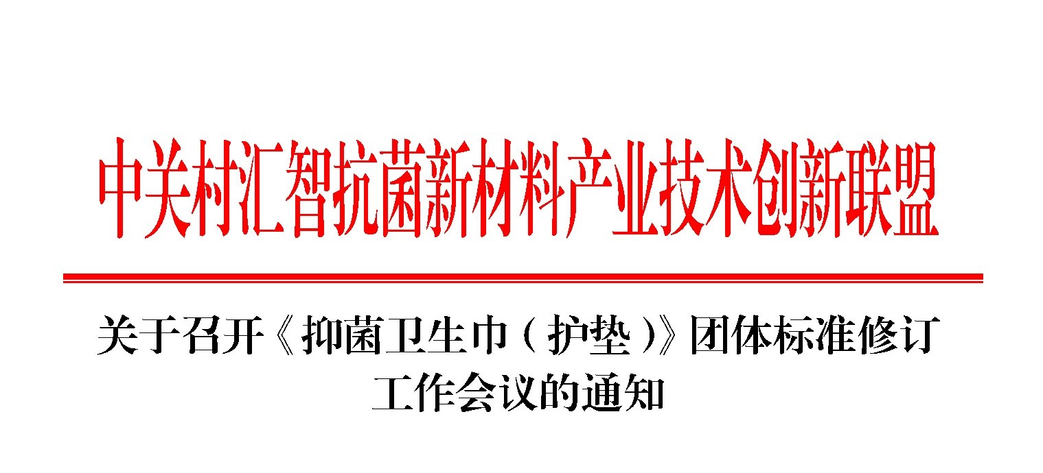 關(guān)于召開《抑菌衛(wèi)生巾(護墊)》團體標(biāo)準(zhǔn)修訂工作會議的通知